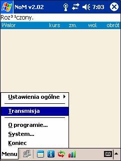 1. Z menu głównego wybierz polecenie Transmisja i zaczekaj na połączenie się programu z serwerem.