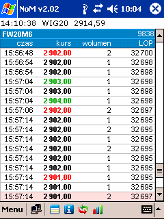 informacji rynkowych dla instrumentu, na którym znajdował się kursor tabeli